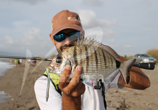 Y el sargo más grande de la jornada, capturado por Francisco en torno al kilo, y la Shalty Shape con el BM 70 kaki con el que disfrutó lo suyo.
